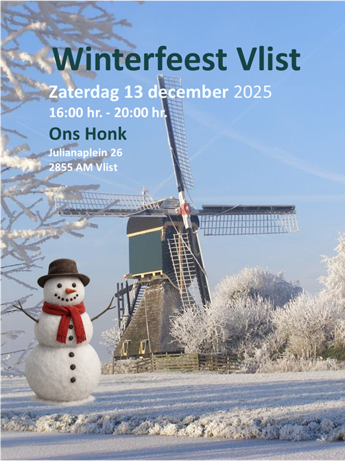 Op zaterdag 13 december wordt tussen 16:00hr en 20:00hr het Winterfeest georganiseerd. De locatie is zoals altijd "Ons Honk" aan het Julianaplein 26. Dit feest is een gezamenlijk initiatief van de Vlister-verenigingen: Vlister Vrouwen, Dorpsvereniging, Polsstokclub en IJsclub. Het is alweer de 12e editie.